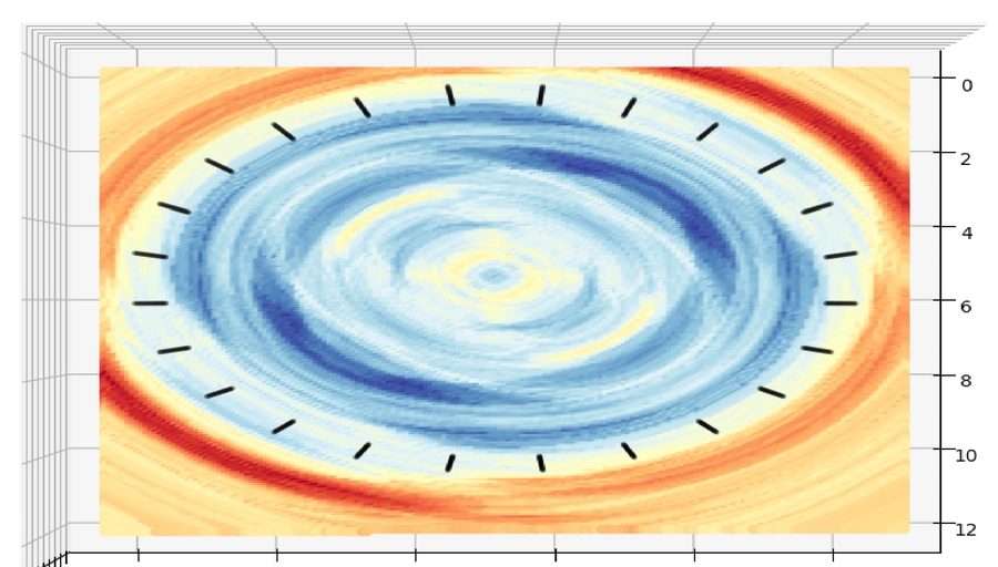 e.g. use atom H as probe, nanotube as surface, calculate absorbation energy of H, got dataset, and use model to predict energy on a plane on the center of nanotube(red is high energy, blue is low energy):